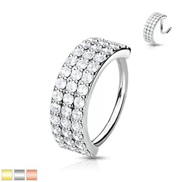 Deze prachtige piercing ringen zijn gemaakt van Brass en hebben een uniek ontwerp met drie halve lijnen versierd met glinsterende CZ steentjes. Deze oorringen zijn niet alleen stijlvol en elegant, maar ook zeer comfortabel om te dragen.