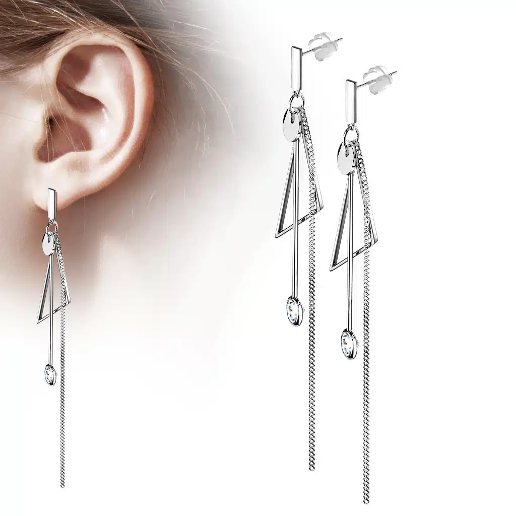 Trendy abstracte oorbellen van 316L chirurgisch staal, verbonden met een subtiele ketting en afgewerkt met stijlvolle hangende CZ-steentjes. Een elegante eyecatcher die elke outfit compleet maakt.
