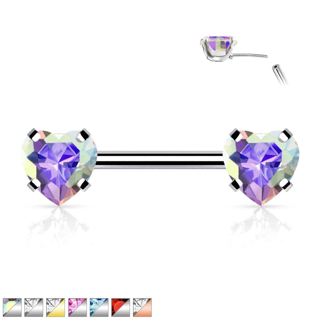 Voeg een vleugje flair toe aan je look met onze prachtige tepelpiercings versierd met hartje-steentjes! Gemaakt van hoogwaardig chirurgisch staal, bieden ze niet alleen comfort, maar ook een stralende uitstraling.